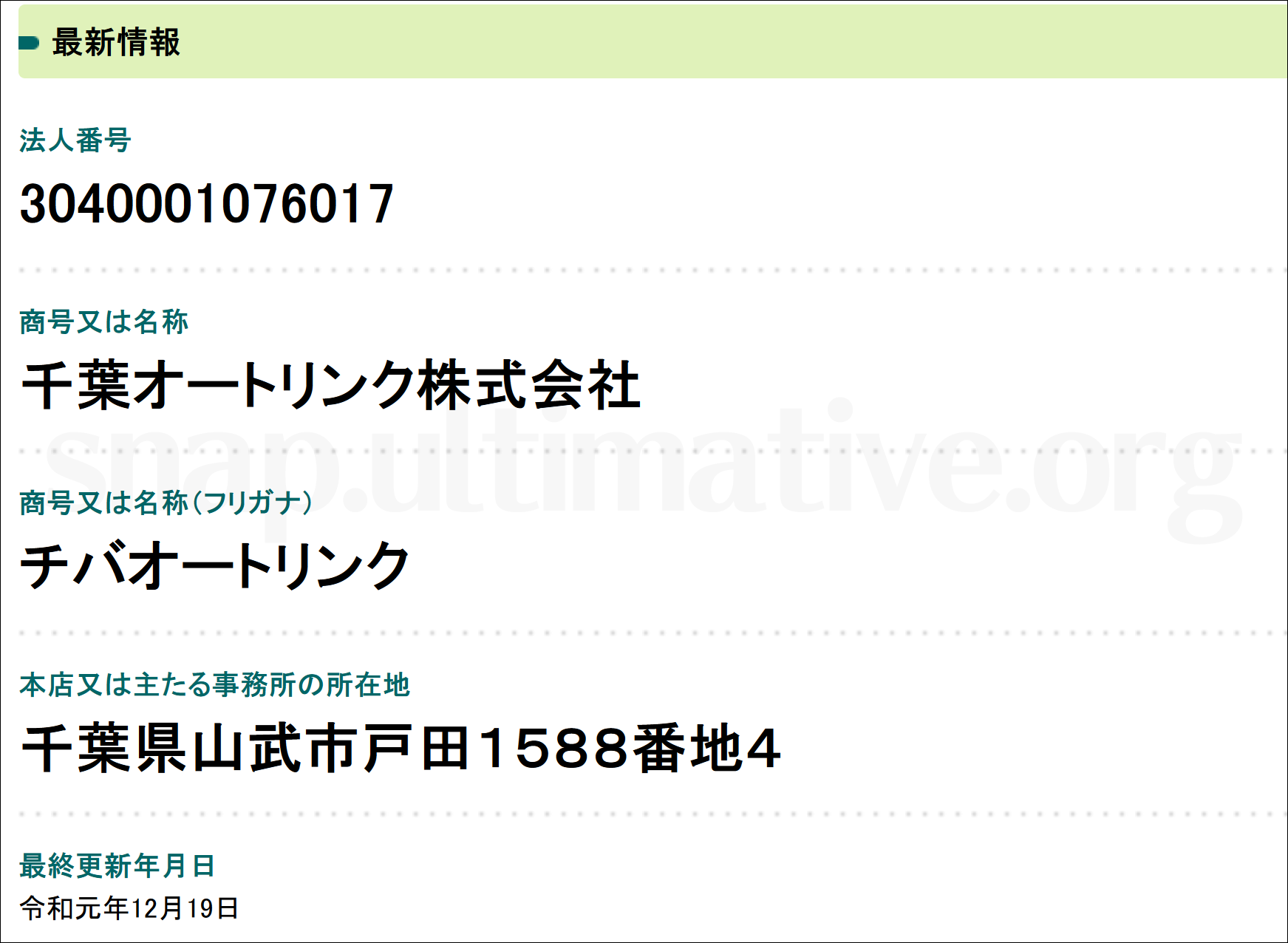 なお、一部の口コミでは千葉オートリンクが実在しない架空の会社であるかのように語られていますが、登記簿上は下記の通りに実在しています。