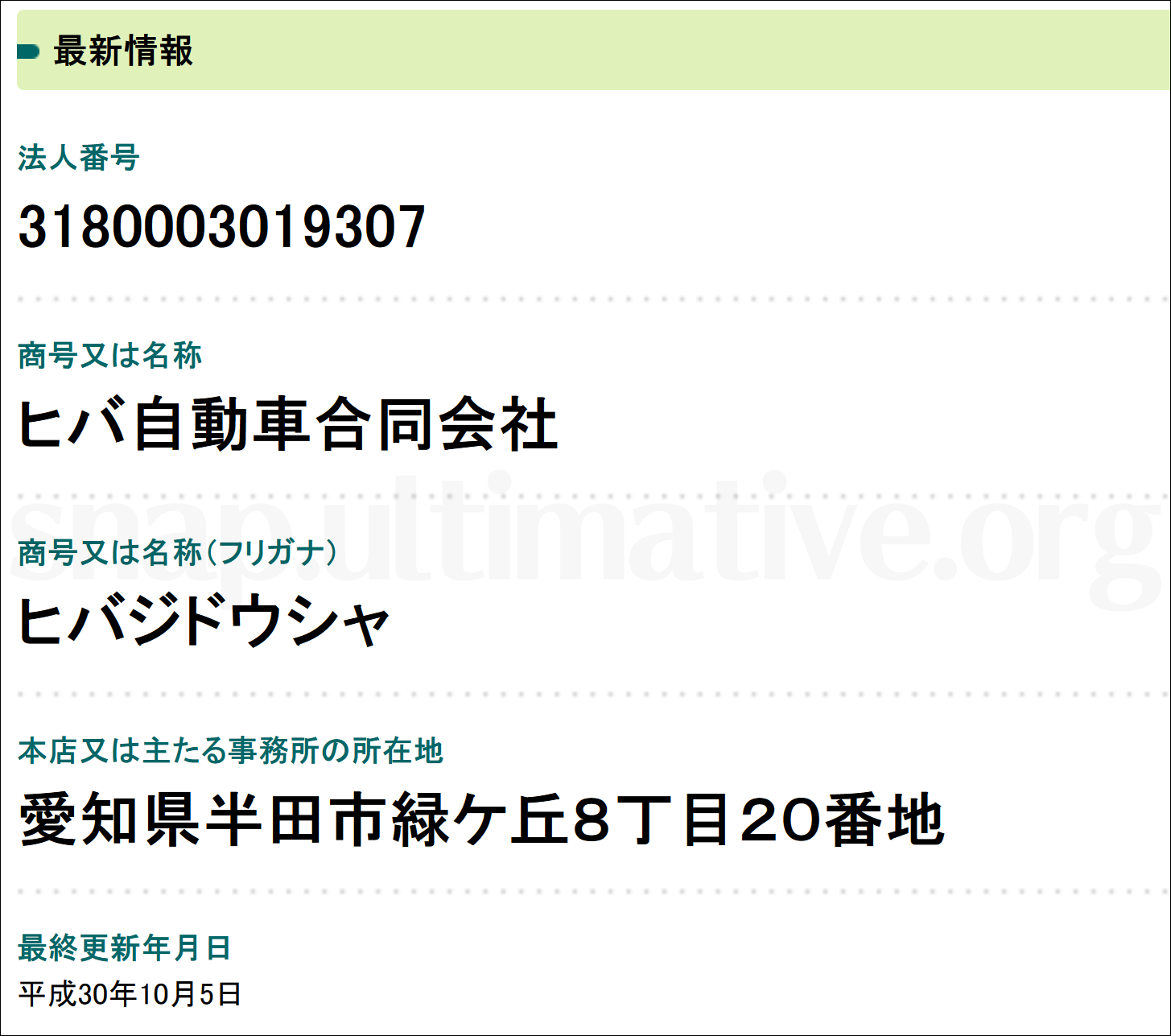 なお、一部の口コミではヒバ自動車が実在しない架空の会社であるかのように語られていますが、登記簿上は下記の通りに実在しています。