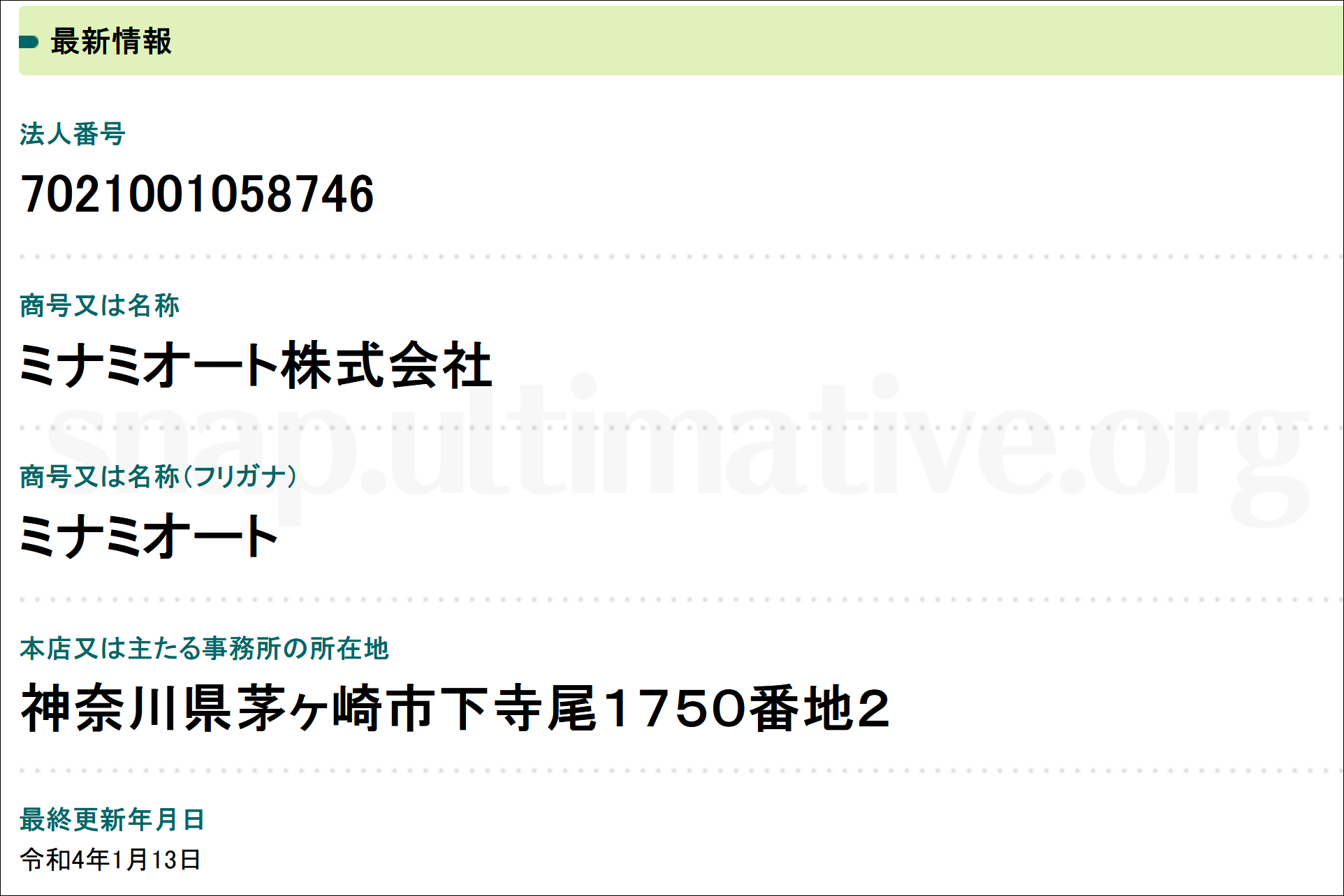 神奈川県茅ヶ崎市下寺尾1750番地2(登記簿上の住所)